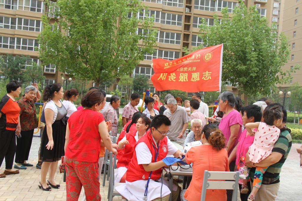 学院机关党总支承担了本次进党员进社区活动,安排了健康咨询、健康知识宣传、清洁家园等志愿服务项目。健康咨询服务活动,学院附属医院的医护人员带来了血糖仪、电子血压计、健康秤等大型仪器,深受小区居民欢迎。咨询台前,小区居民排起了长队,验血糖、量血压。有的小区居民还打电话给需要健康咨询的亲友,到现场咨询医疗专家健康问题。参加清洁家园和健康知识宣传的党员志愿者也用自己的行动赢得了小区居民的认可,树立了党员形象。