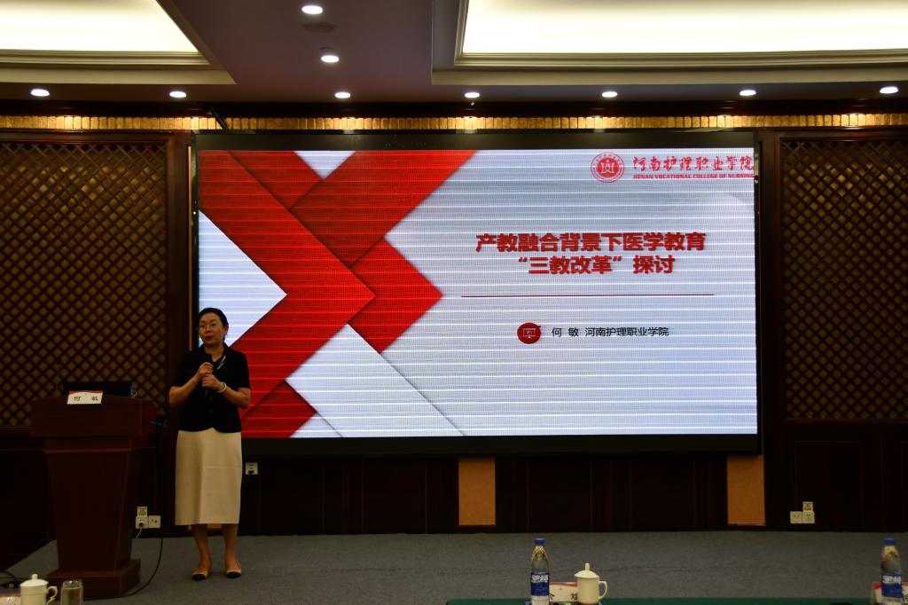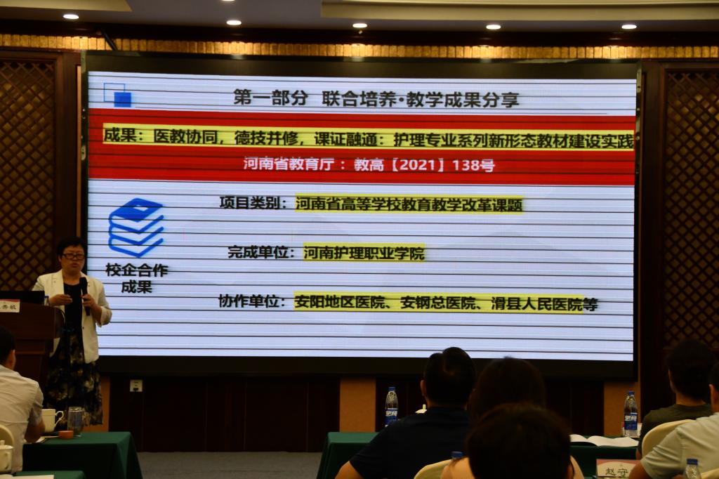会议上,江苏卫生健康职业学院药学院党总支书记言枫,钟山职业技术学院护理学院院长孙国庆,张家港港城康复医院副院长曹沛莲、扬州工业职业技术学院教务处处长张宏彬从宏观、微观多角度进行了政策解读、分析当前校企合作和产教融合存在的问题和困境,提出推进产教融合高质量发展的路径思考和探索。学院教务处处长朱秀敏展示了近年来学校校企合作产出的教学成果,并安排部署新学年联合培养教学工作。护理系主任何敏从职业教育改革政策入手,解析产教融合、三教改革、岗课赛证、人才培养的结构逻辑,提出教师、教材、教法的内容设计与实施路径。药学检验系主任刘芳君进行了教学设计技巧演示。会议报告精彩纷呈,站位高,落地实,高屋建瓴,与会人员纷纷表示,学有所思,学有所悟,获益匪浅。