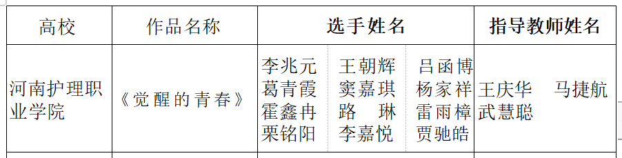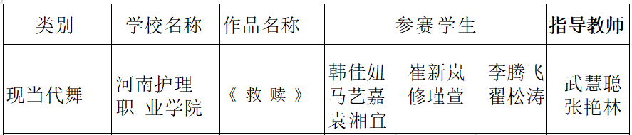 河南省大学生校园舞蹈大赛获奖名单(业余组)