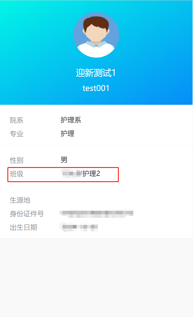 第三步:查看班级信息。点击头像处,弹出详情页,缴费、分班后可查看自己班级信息。