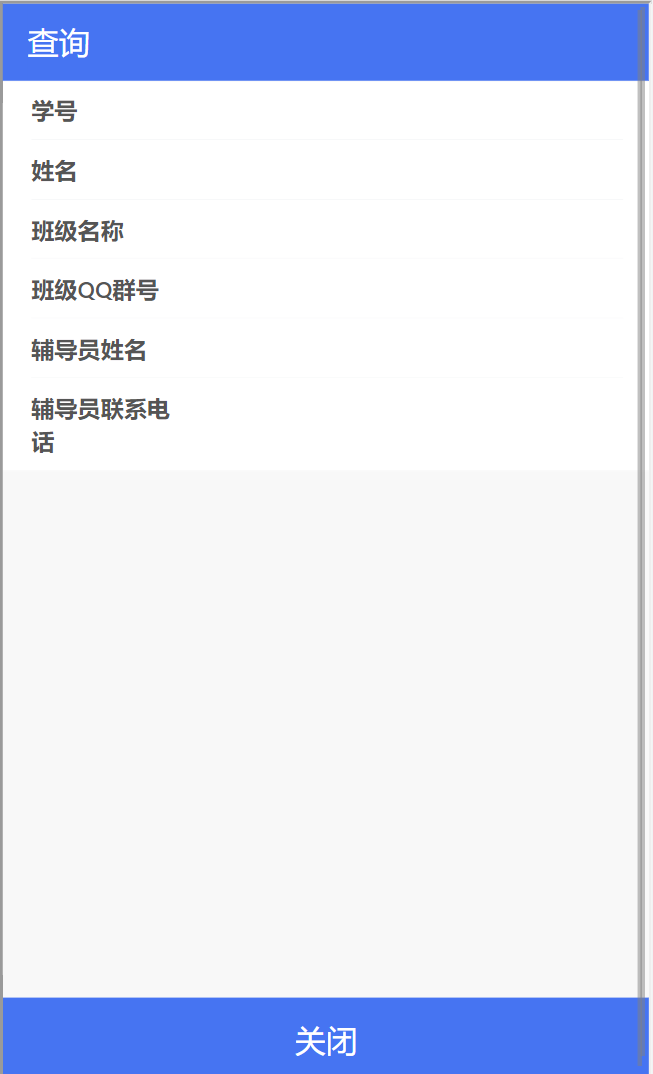 报到完成后,可以自行查询班级宿舍信息。