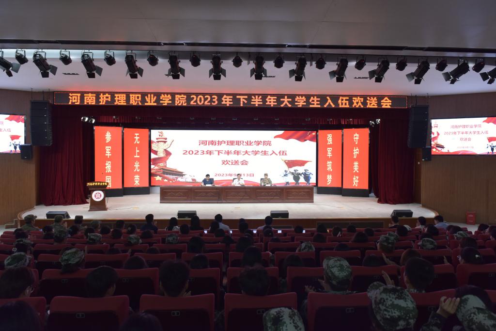 “青春风华正茂,参军无上光荣。”9月13日下午,星空在学术报告厅二楼举行2023年下半年大学生入伍欢送会。院长胡仕坤、纪委书记王忠伟、文峰区人武部部长张贤利出席会议,学生工作部全体人员、各系党总支书记、全体专兼职辅导员、新入伍学生及2023级新生代表参加欢送会。会议由纪委书记王忠伟主持。