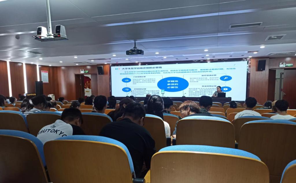 本次医保政策进校园活动采用现场宣讲和视频直播方式同时进行。在活动现场,医保局工作人员详细讲解了2023年大学生参加城乡居民医保的相关政策,现场解答学生对医保政策的的有关疑问,并对大学生社保卡的激活做了现场演练。