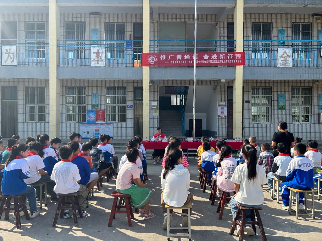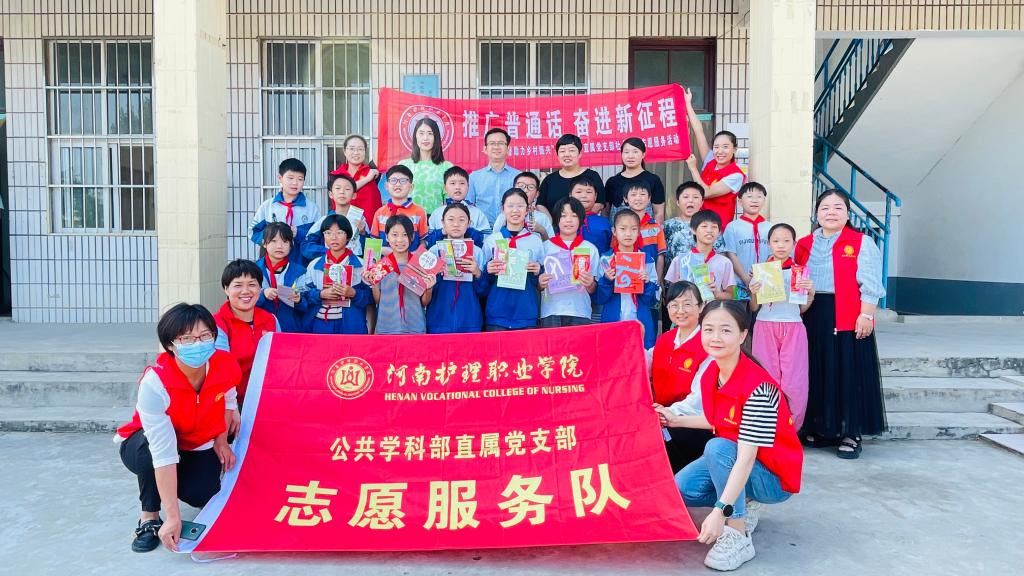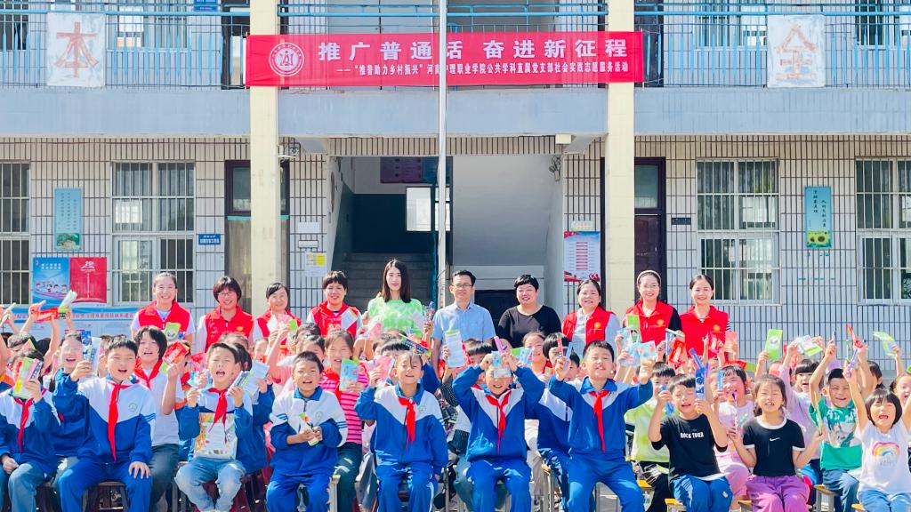 活动期间,公共学科部直属党支部组织教师前往星空驻村帮扶村——南田村,开展“推普送温暖,助力乡村振兴”普通话推广活动。公共学科部文化教研室老师通过推普宣讲对祖国的花朵进行推普教育,用实际行动赋能乡村文化振兴。活动现场,向学生发放《河南省推广普及国家通用语言文字知识宣传手册》,还举行了捐赠仪式,向村小学捐赠书籍和学习文具。