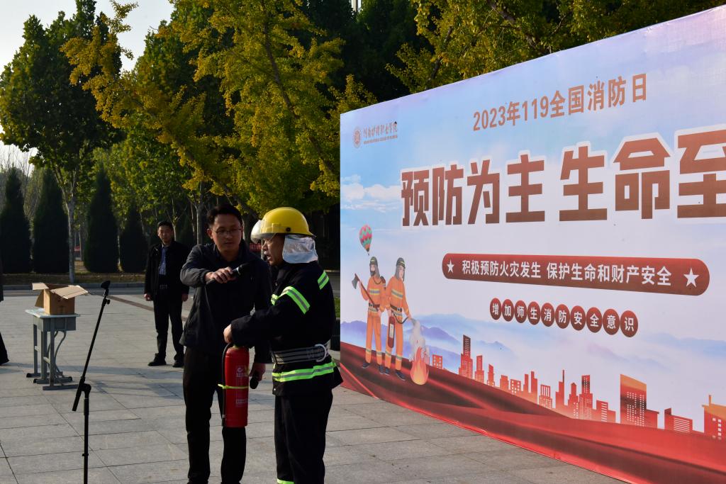 随后向各系发放了消防宣传折页及宣传品,并开展消防培训及灭火演练。消防队员对灭火器的使用方法进行讲解,所有参会师生进行灭火器实操演练,提升了广大师生的安全意识和自救能力。