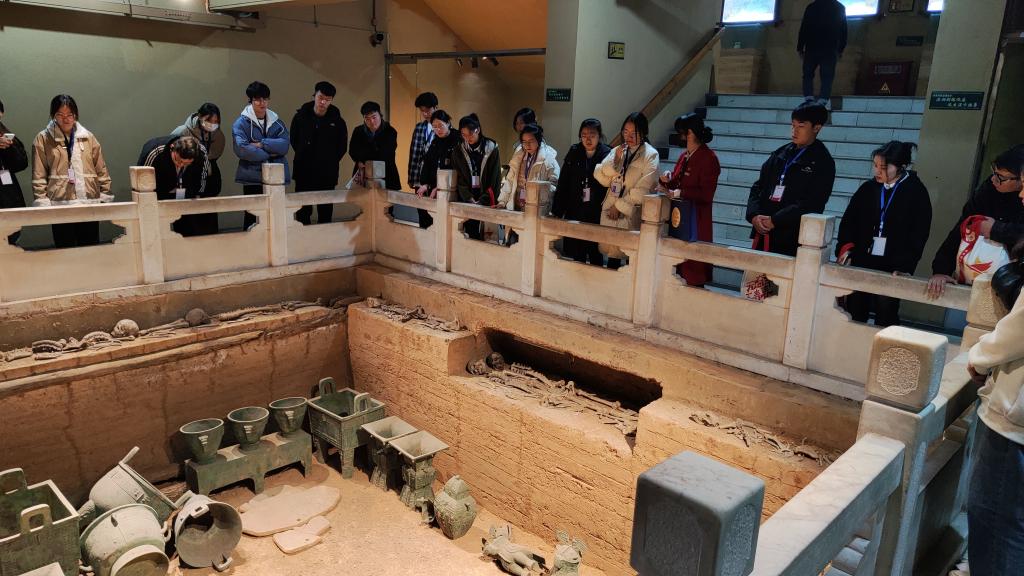 习近平总书记在考察河南安阳时强调:“中国的汉文字非常了不起,中华民族的形成和发展离不开汉文字的维系”。沿着习近平总书记的足迹,学员们先后参观了殷墟博物馆、甲骨文碑林、甲骨窖穴展厅、车马坑、祭祀坑、妇好墓,了解龟甲上的卜辞和青铜器上铭文背后的故事以及汉字的演变历程。大家专注地驻足凝望,在历史的长河中触摸甲骨文的斑驳墨迹,通过这些尘封的文物感受中华古老文化的精髓和魅力。
