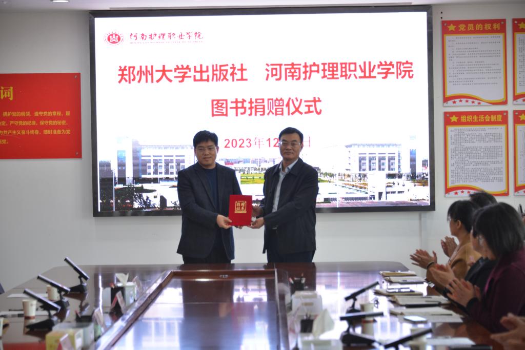 12月8日下午,郑州大学出版社向星空捐赠图书仪式在星空第一会议室举行。院长胡仕坤、副院长王家桥、郑州大学出版社社长、总编辑、郑州大学期刊中心主任孙保营等出席捐赠仪式。