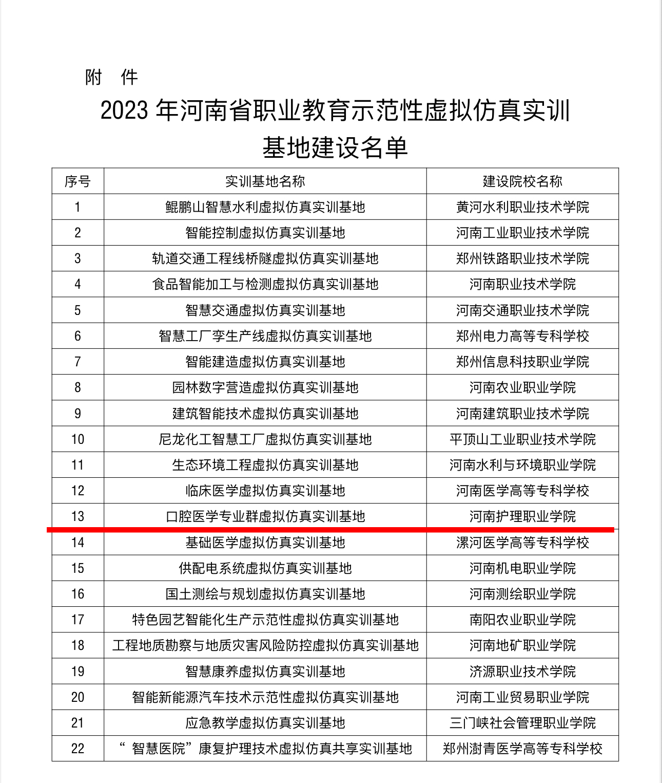 近日,省教育厅办公室公布了2023年河南省职业教育示范性虚拟仿真实训基地建设名单,星空主持建设的“口腔医学专业群虚拟仿真实训基地”被确定为省级职业教育示范性虚拟仿真实训基地。