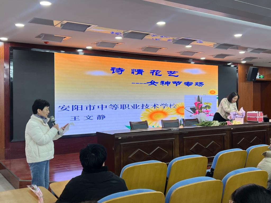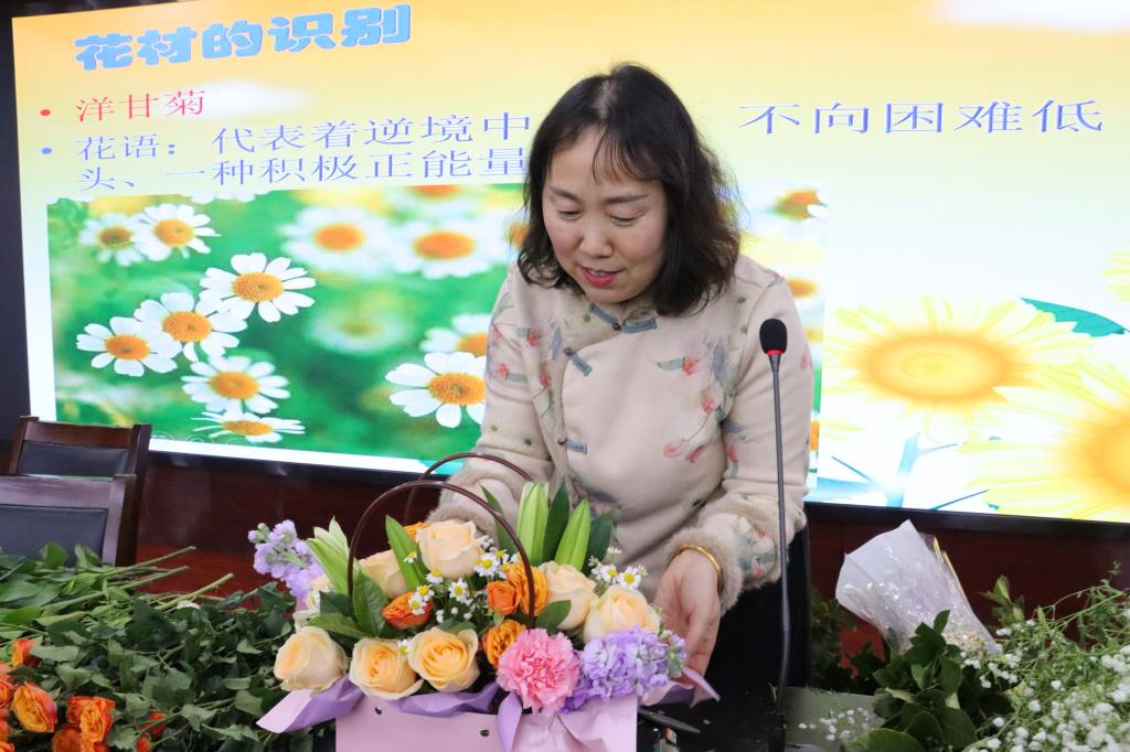 前期,校工会还在学术报告厅一楼举办花艺专题讲座。本次讲座邀请了国家高级花艺师、安阳职业技术学院王文静老师作专题讲座,学校百余名师生到场聆听。活动伊始,工会副主席李艳芳亲切地向女职工们送上节日的祝福,并鼓励大家在忙碌的工作中放松身心,享受生活的美好,提升自我价值。随后,王文静老师耐心细致地给大家讲解插花的分类,花材的识别、裁剪、颜色搭配、造型等方面的插花技巧,并具体指导如何插花。女职工们积极参与,一边插花一边交流,玩中求学,玩中求乐,鲜花、笑声交织在一起,活动现场花团锦簇、芳香四溢,气氛热烈温馨,洋溢着浓浓的欢乐和幸福。