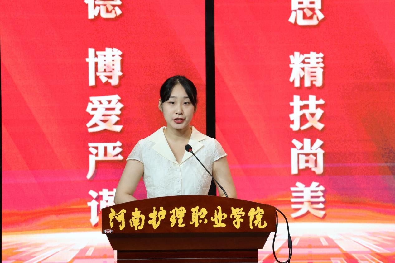 教师代表王雅岚祝福2024届毕业生顺利完成学业,回忆了同学们在河护的三年拼搏时光。并向同学们提出三点希望:坚守初心,不忘使命;心存敬畏,严于律己;磨炼意志,迎接挑战。