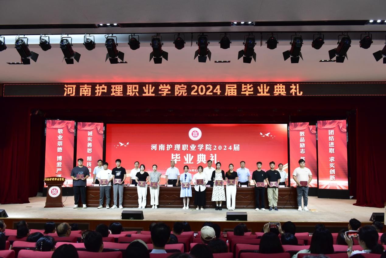 在热烈的掌声中,学校领导依次为荣获2024年校级优秀大专毕业生和2024届毕业生代表颁发毕业证书。