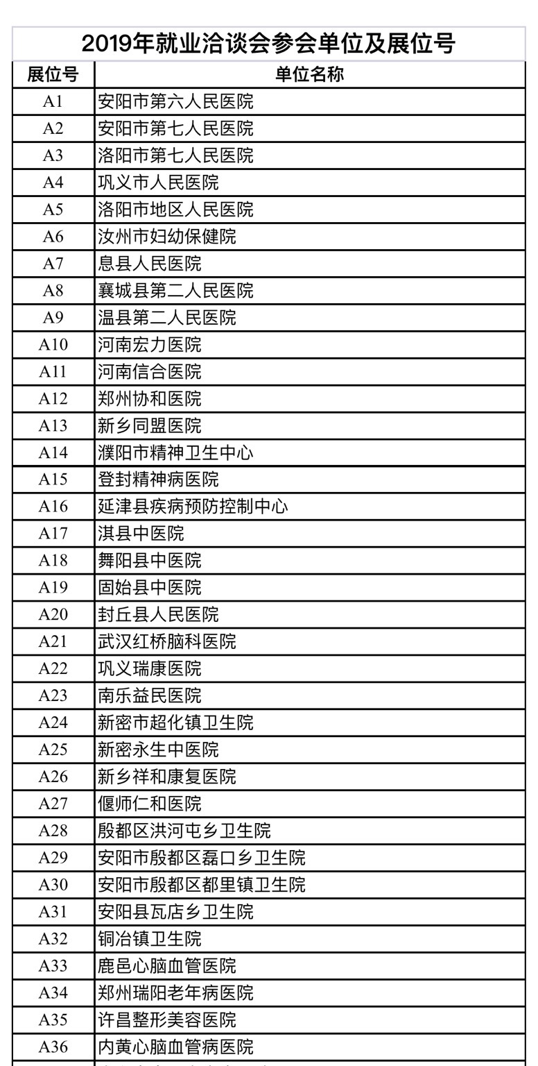截至5月5日,星空XK体育2019年毕业生就业双向选择洽谈会共计126家单位参会,现公布正式参会单位目录和展位号如下: