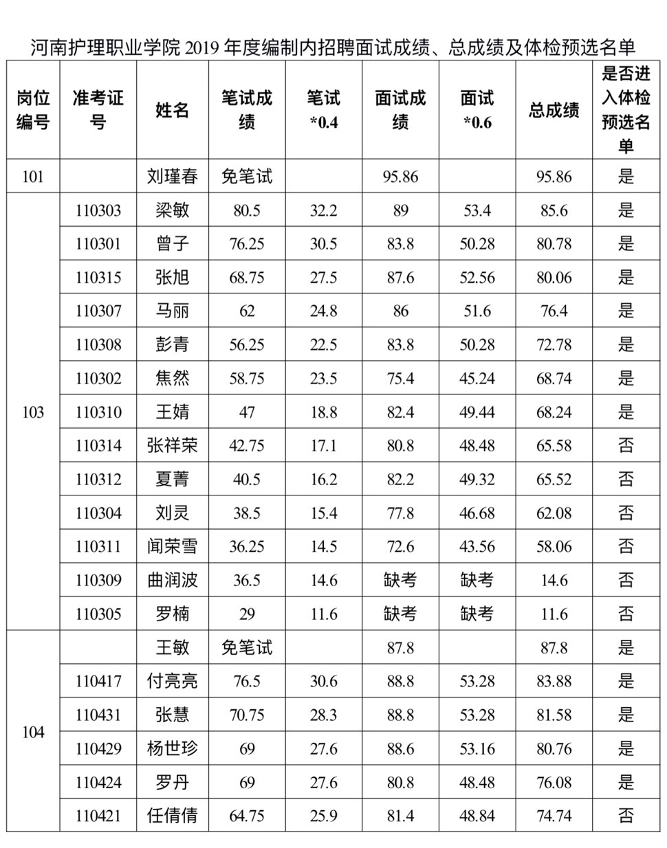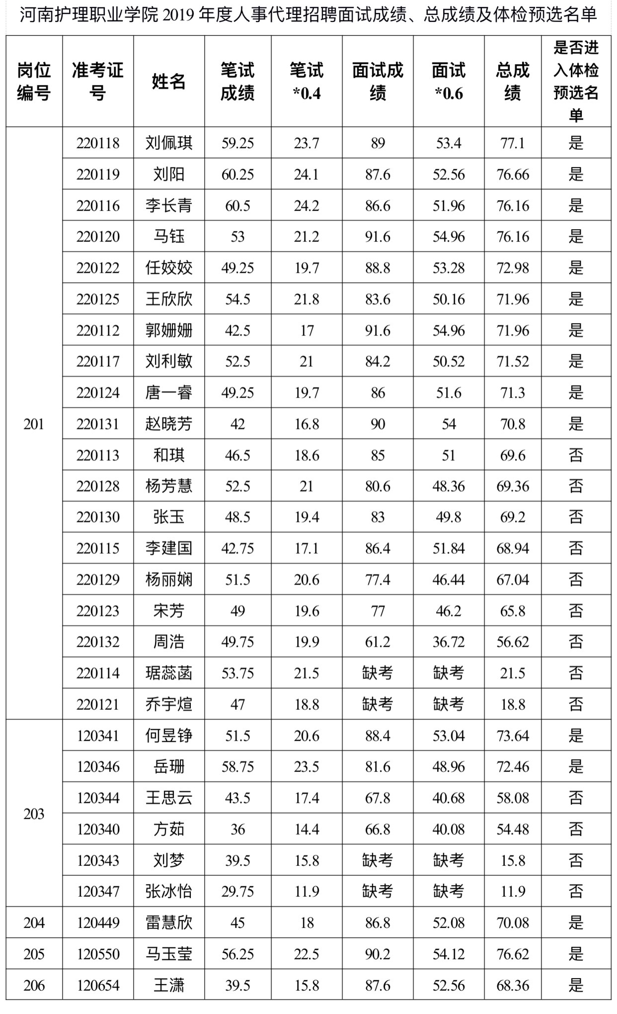 一、按照招聘方案规定,现将面试成绩、总成绩及体检预选名单公示如下,公示期为2019年7月21日—7月23日。