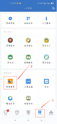 2. 在工作台页面中找到“智慧课堂”应用并打开进入。