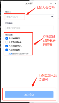 2. 点击加入会议,输入任课老师下发的会议码或会议邀请链接进入会议即可。