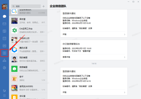 1.打开电脑端企业微信,在左侧菜单栏选择工作台。