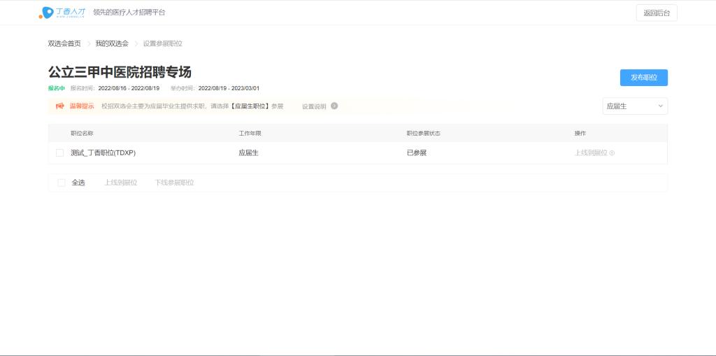5.发布职位后即为报名完成,您可继续发布剩余参展校招职位,待工作人员审核通过后即可全部展示在招聘会页面