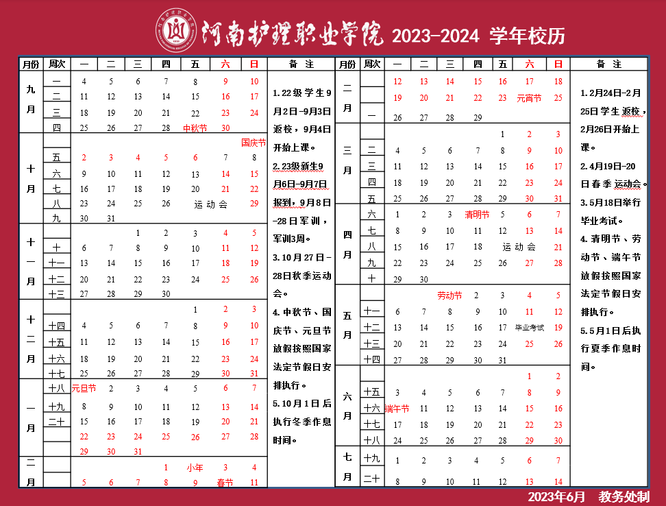 星空XK体育2023-2024学年校历